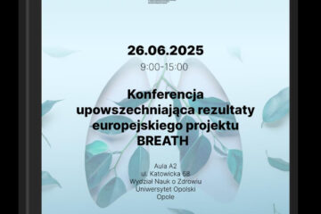 📅 26 czerwca 2025 r. 📍 Aula A2, Wydział Nauk o Zdrowiu Uniwersytetu Opolskiego Multiplier Event – Konferencja upowszechniająca rezultaty projektu BREATH – “A European Collaborative and Innovative Partnership to Promote Physical Activity for Patients with Chronic Respiratory Conditions” Tytuł konferencji: BREATH: Interdyscyplinarne podejścia i strategie w zarządzaniu chorobami układu Dowiedz się więcej…